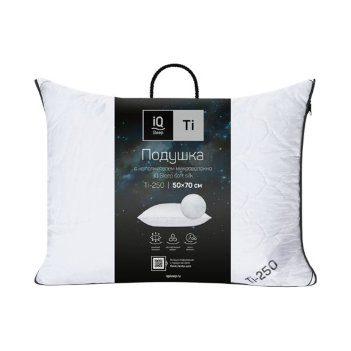 Основа подушки - микроволокно IQ Sleep soft silk. Это инновационный материал, который обладает всеми свойствами натурального лебяжьего пуха. Он быстро восстанавливает свою форму после сжатия. IQ Sleep soft silk - гипоаллергенный наполнитель, который прекрасно пропускает воздух.