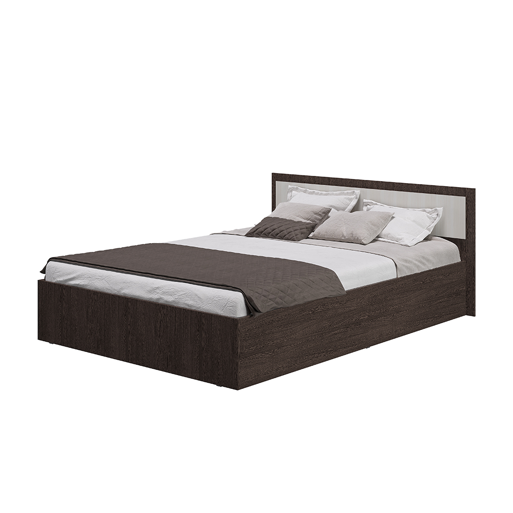Двуспальная кровать "Фиеста" выполнена из высококачественной ЛДСП в цвете "венге". Изголовье имеет светлую вставку цвета "лоредо". У кровати отсутствуют ножки, это избавит вас от скопления пыли под ней.