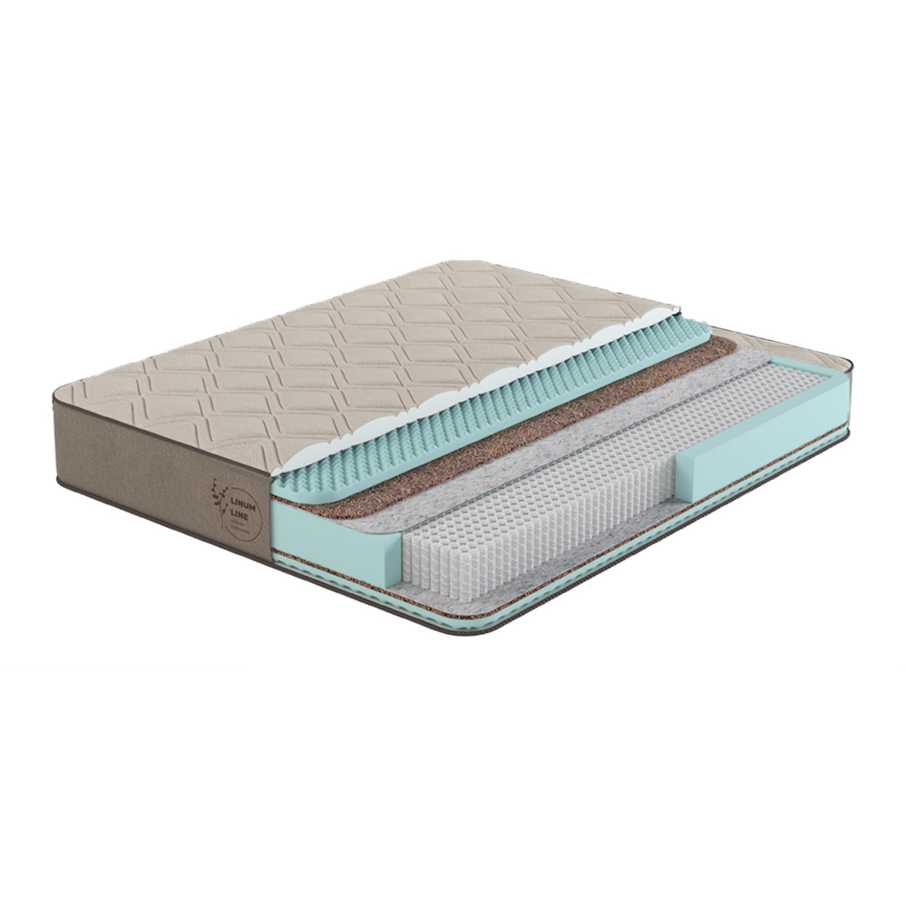 Чехол выполнен из мягкого льняного трикотажа Linum Line, обладает высокой воздухопроницаемостью, что создает оптимальный микроклимат для сна. Очень практичный бурлет из долговечной мебельной ткани с вышивкой, а внутри - натуральные материалы: кокосовое волокно в сочетании с пеной для легкого массажного эффекта.