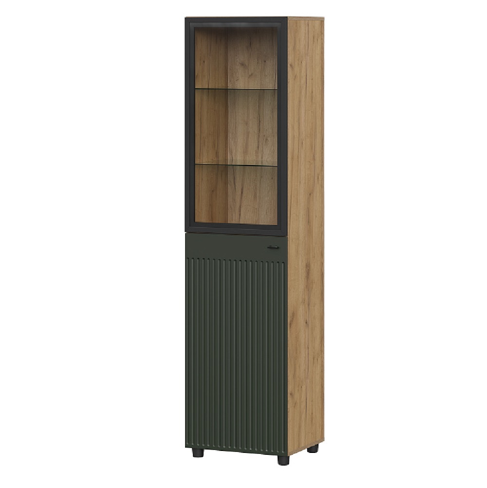 Пенал со стеклом Милан Дуб Золотой/Черный/Олива Софт