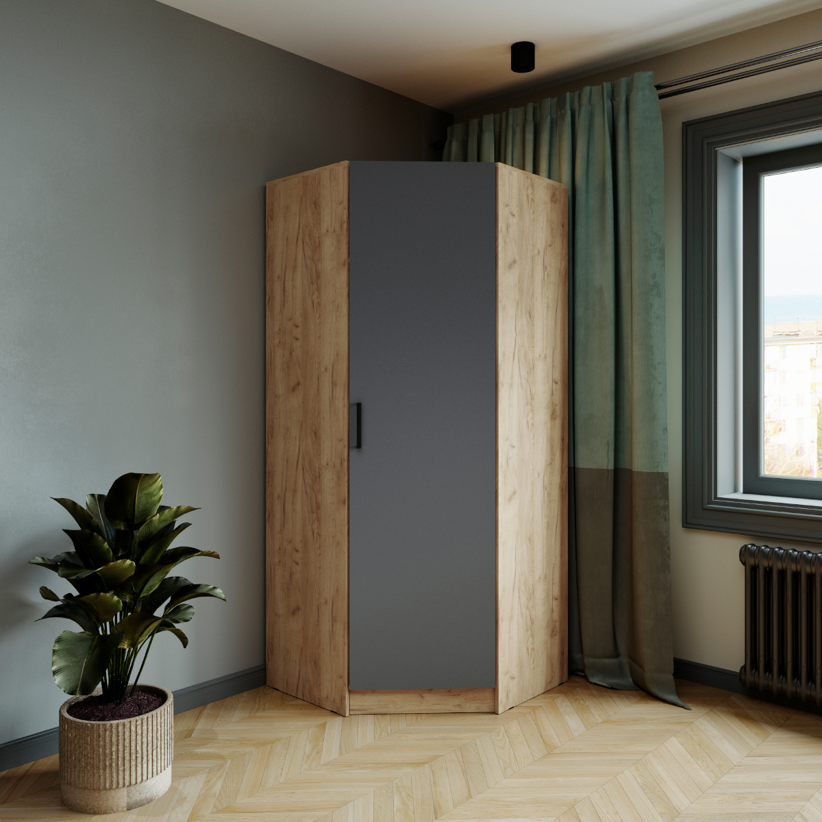 Шкаф комбинированный Ларс угловой угол скос дуб крафт золотой/графит серый
