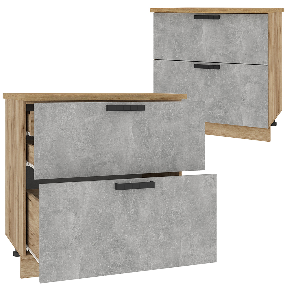 Шкаф напольный с ящиками КШН2ВЯ 800 ПВ (800х844х478)/ корпус ДУБ КРАФТ ЗОЛОТО/ фасад МДФ ХОЛСТ ЛАТТЕ TF 19/Сахара80×84.4×47.8 смПод заказ