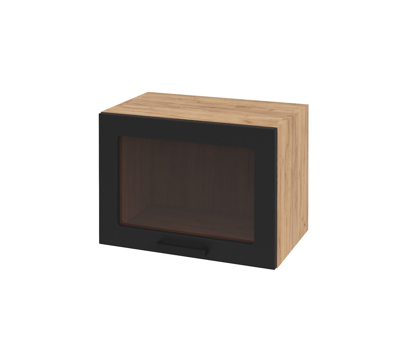 Шкаф верхний со стеклом ШВГС 800 (0,358х0,8х0,314)/ корпус ДУБ КРАФТ ЗОЛОТО/ фасад МДФ ХОЛСТ ВУЛКАН TF 19/Сахара80×35.8×31.4 смПод заказ