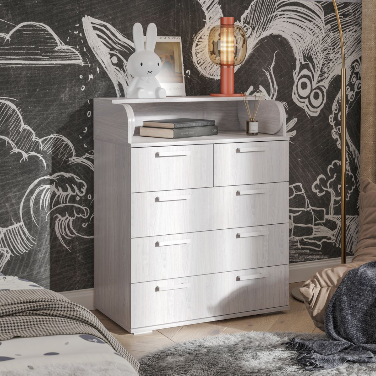 Комод Стандарт-5 New Белый/цемент светлый -фото