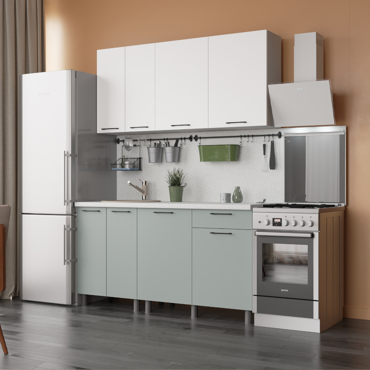 При создании модулей кухни использовались только высококачественные и экологически безопасные материалы и фурнитура, что гарантирует долговечность, удобство эксплуатации и легкий уход за поверхностью.