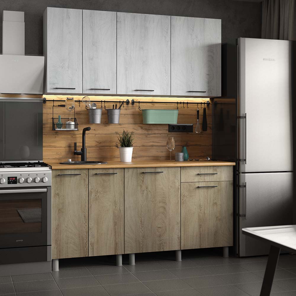 Кухня Палермо обладает гармоничными и лаконичными формами, присущими Скандинавскому стилю с его стремлением к экологичности и близости к природе. Дизайн без излишней декорации, повторяющий обработанную древесину создает ощущение домашнего уюта, а светлые оттенки интерьера кухни позволят пространству выглядеть более просторным. Конструкция кухни позволит удобно распределить необходимые вещи для хранения, эргономично организовывая рабочее пространство.