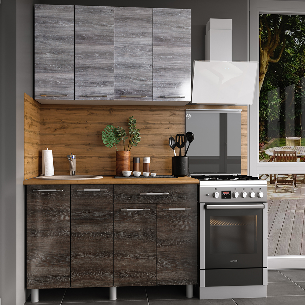 Кухня Танго 1,2 м Дуб Шале серебро/Дуб Шале мореный (без столешницы)