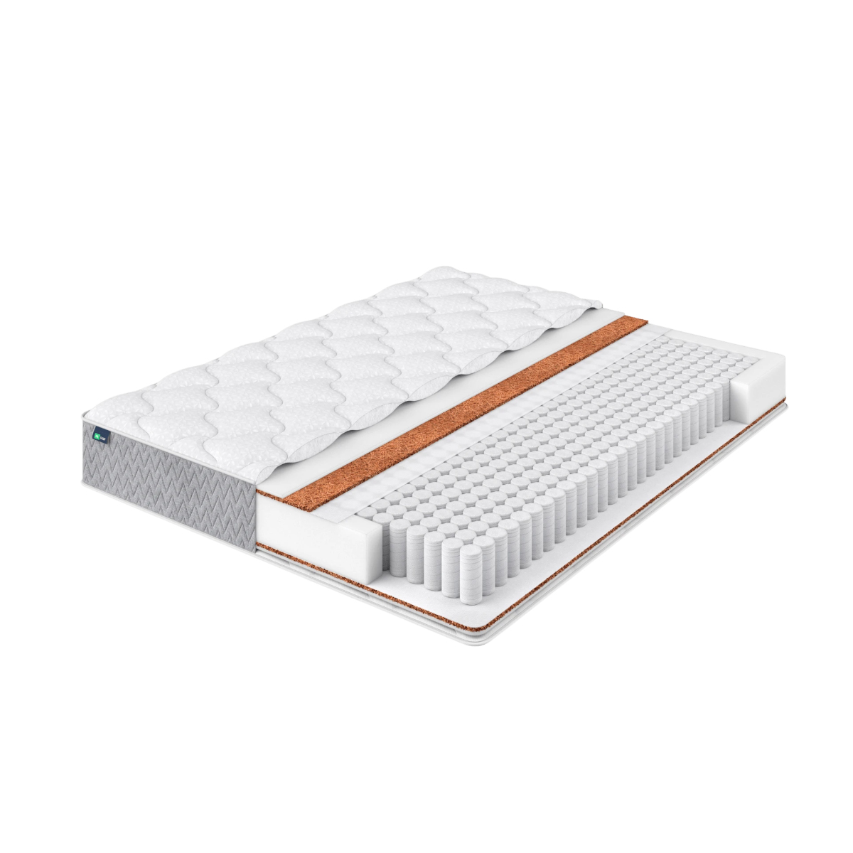 Пружинный матрас с одинаковой жесткостью сторон. Блок независимых пружин FLS 550, где на одно спальное место приходится 550 пружин, составляет основу матраса. С каждой стороны блока кокосовая койра, высотой 1 см, натуральный кокос, скрепленный латексной пропиткой. Этот материал обеспечивает свойства жесткости матрасу, а пена Sky Cell Base в основе комфортного слоя создает анатомическую поддержку. Чехол матраса изготовлен из трикотажа и StrongAir — эти материалы хорошо пропускают воздух, а это значит, что ваш матрас всегда будет оставаться свежим. Стежка бурлета выполнена с помощью ультразвука, эта технология позволяет создавать фактурный рисунок с прочным соединением. Матрас Active Optima Cocos — выбор любителей жестких матрасов с лаконичным скандинавским дизайном.