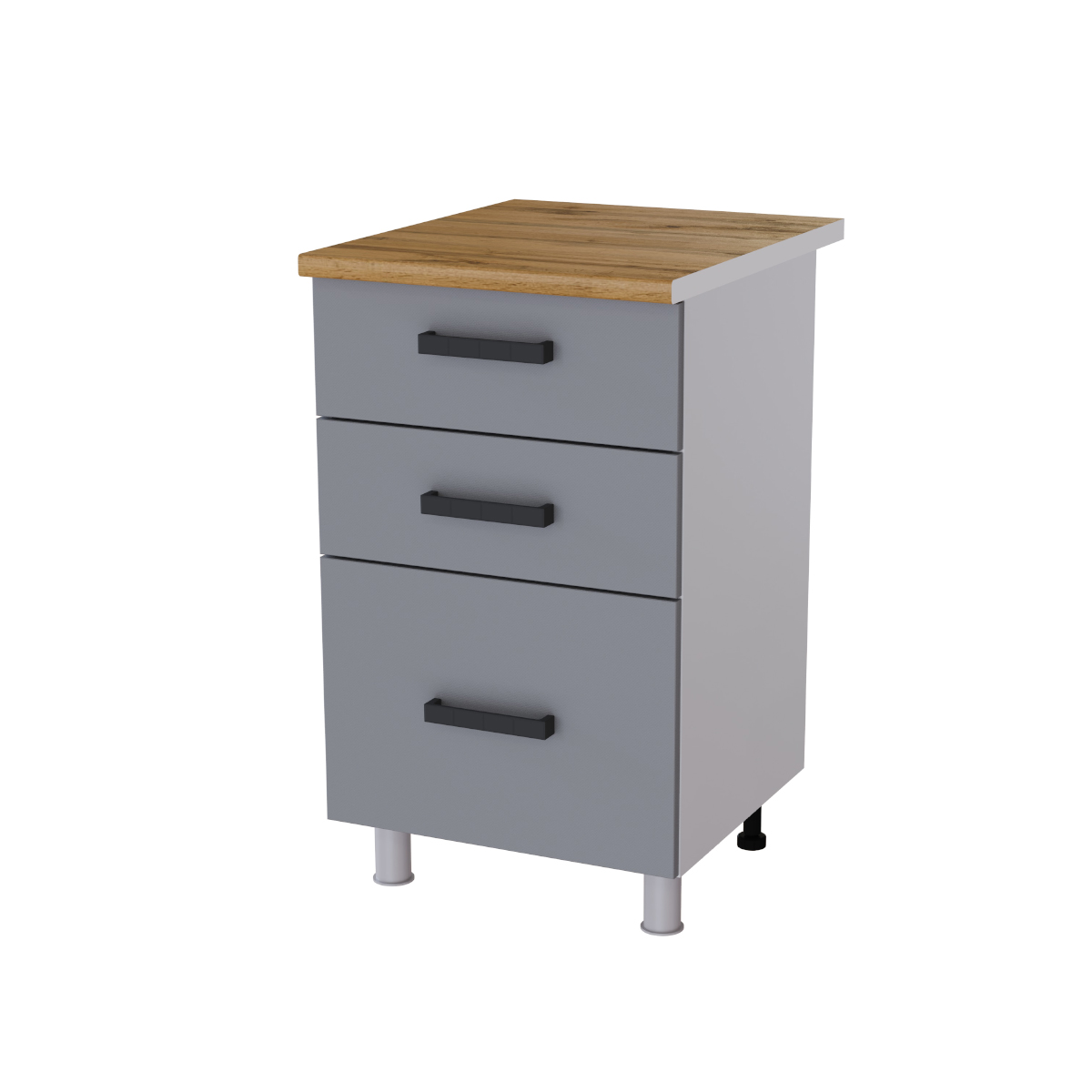 Рабочий стол с 3 ящиками 500 5Р3/корпус Белый/фасад Клен Серый/Хилтон