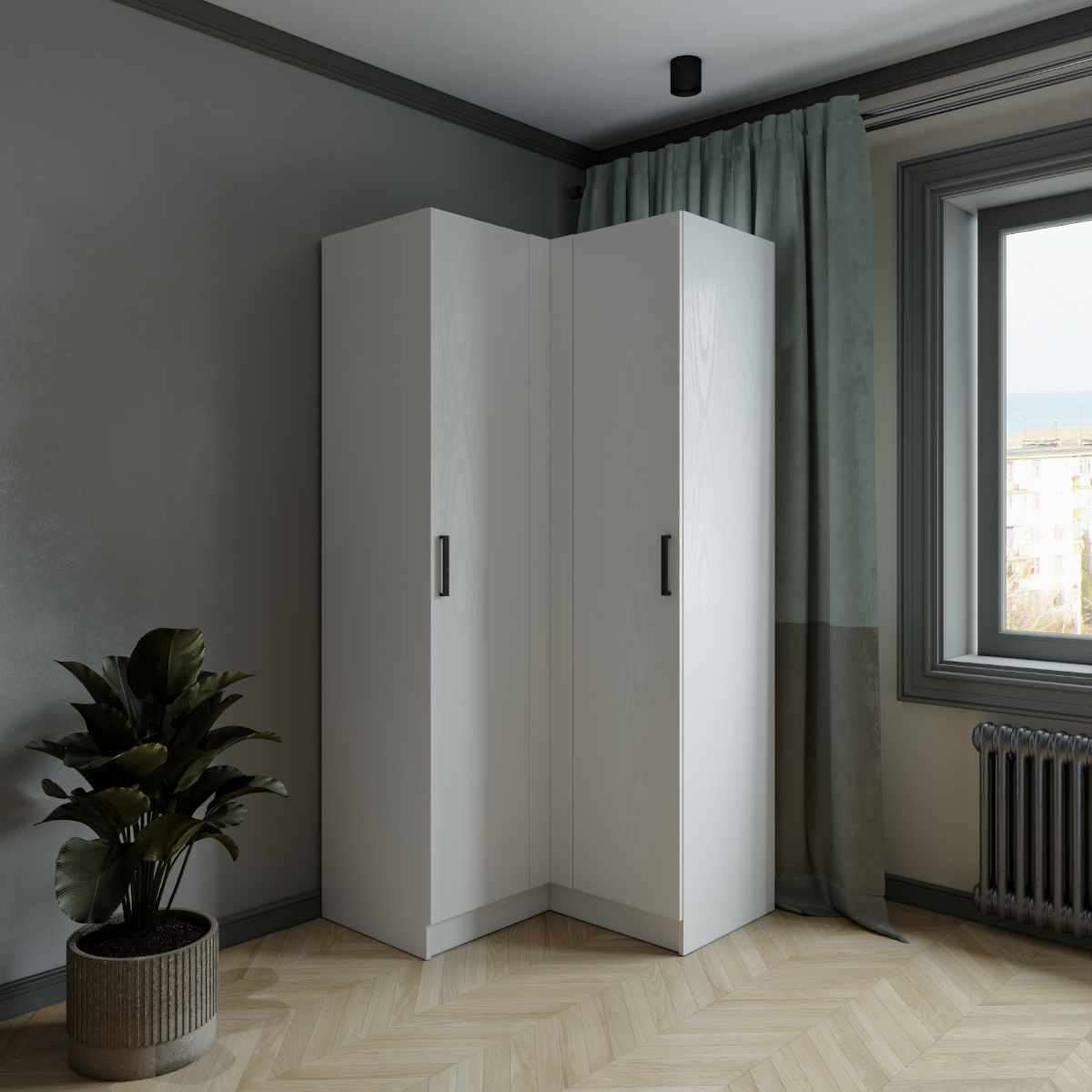 Шкаф комбинированный Ларс угловой угол прямой белыйГабариты (В×Ш×Г) 210 × 100 × 100 см