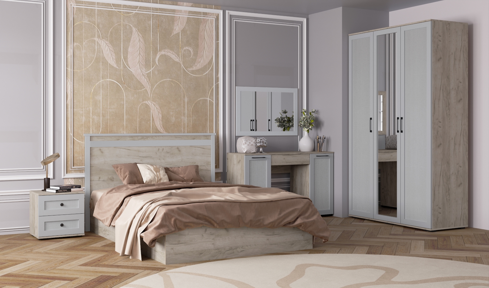 Спальня София Деко дуб крафт серый/светло-серый композиция 1