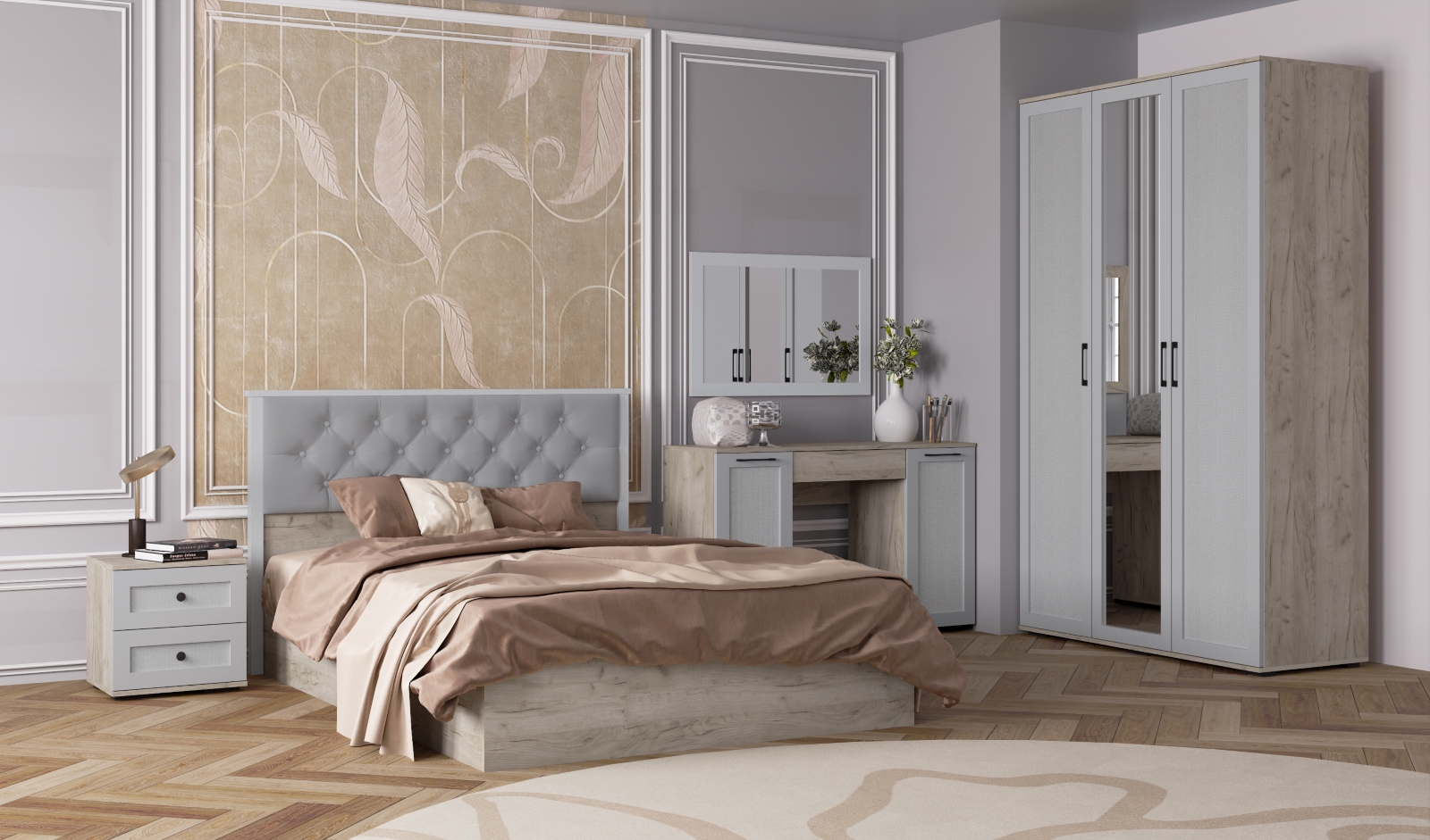 Спальня София Деко дуб крафт серый/светло-серый композиция 2