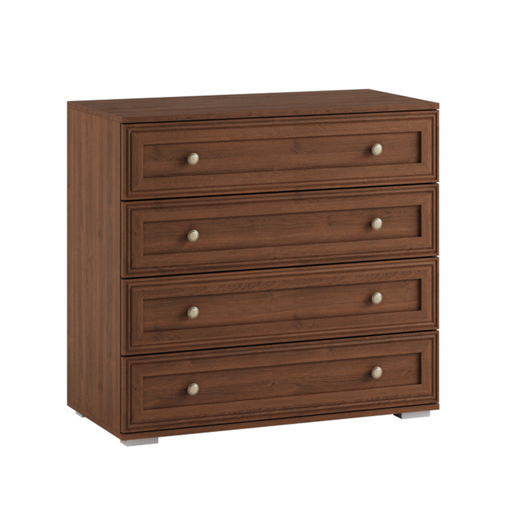 Он предназначен для организации хранения белья, вещей и одежды, для чего комод имеет четыре вместительных выдвижных ящика, которые бесшумно скользят на шариковых направляющих полного выдвижения.