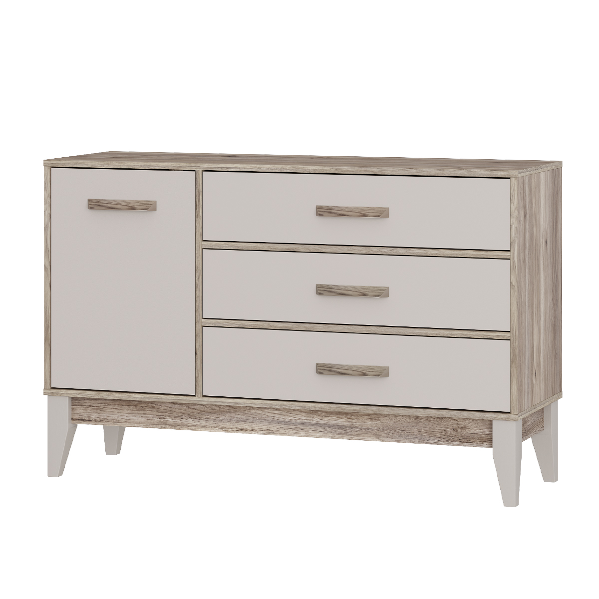 Комод «Скандика» КМ-12 – это не только вместительная, но и стильная модель, которая украсит вашу гостиную или спальню. Полка за дверцей подойдет для хранения важных мелочей, небольшой техники, фотоальбомов. Три просторных ящика позволят удобно рассортировать белье и одежду. Створка плотно фиксируется на магнитах.