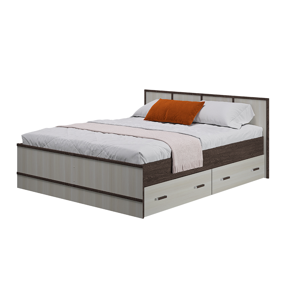 Двуспальная кровать "Сакура" выполнена из ЛДСП высокого качества в контрастных цветах "венге" и "лоредо". Данная модель оснащена двумя выдвижными ящиками, в которых можно хранить постельные принадлежности или любые необходимые вещи. Ящики находятся с одной стороны, но установить их можно с любой стороны. Изделие не имеет ножек, а значит избавит вас от скопления пыли под основанием.