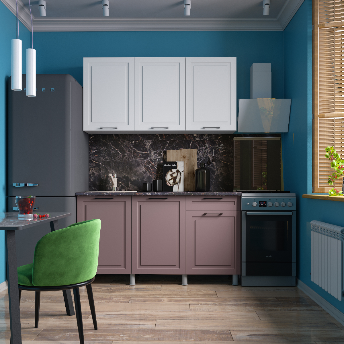 Кухня Аликанте готовое решение 1,5 м Пудра/Белый Снег