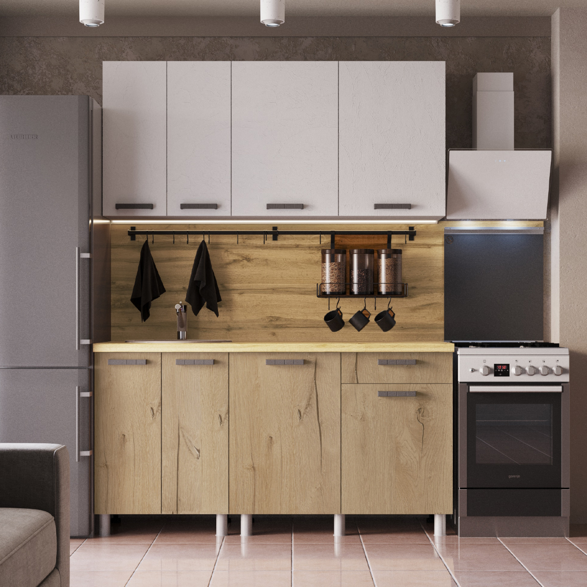 Кухня Григгс 1,6 м Камень светлый/Дуб канадский (без столешницы)