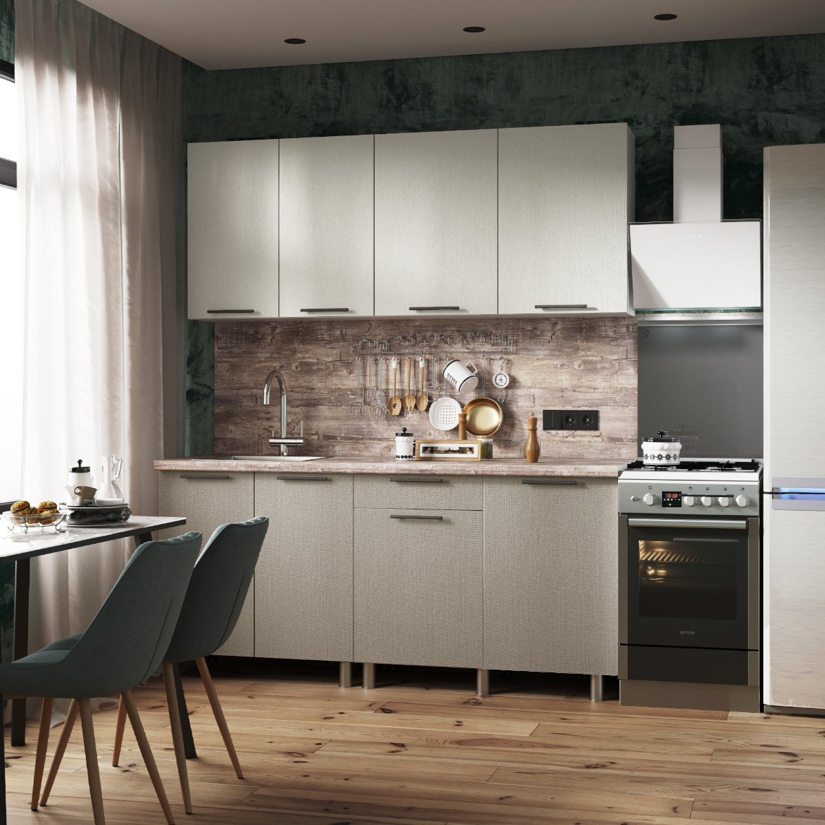 Кухня Мэй готовое решение 2,0 м Твил Бежевый/Твил КремовыйГабариты (×Ш) × 200 см