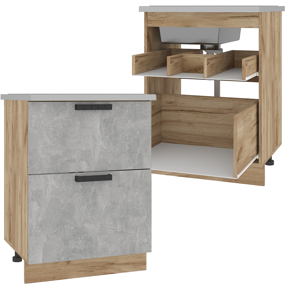 Шкаф нижний мойка с ящиками ШНМ 2Я 600 ПВ (600х844х474)/ корпус ДУБ КРАФТ ЗОЛОТО/ фасад МДФ КАНАДСКИЙ ДУБ ПАЦИФИК/ Каталея