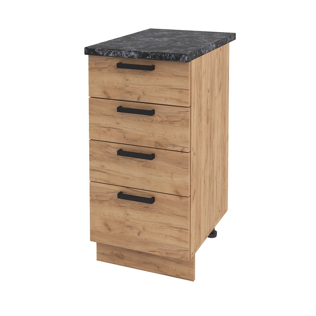 Шкаф нижний с 4мя ящиками ШН4Я 400 ПВ (400х820х474)/ корпус ДУБ КРАФТ ЗОЛОТО/ фасад МДФ ХОЛСТ БРЮЛЕ TF 19/ Альфа