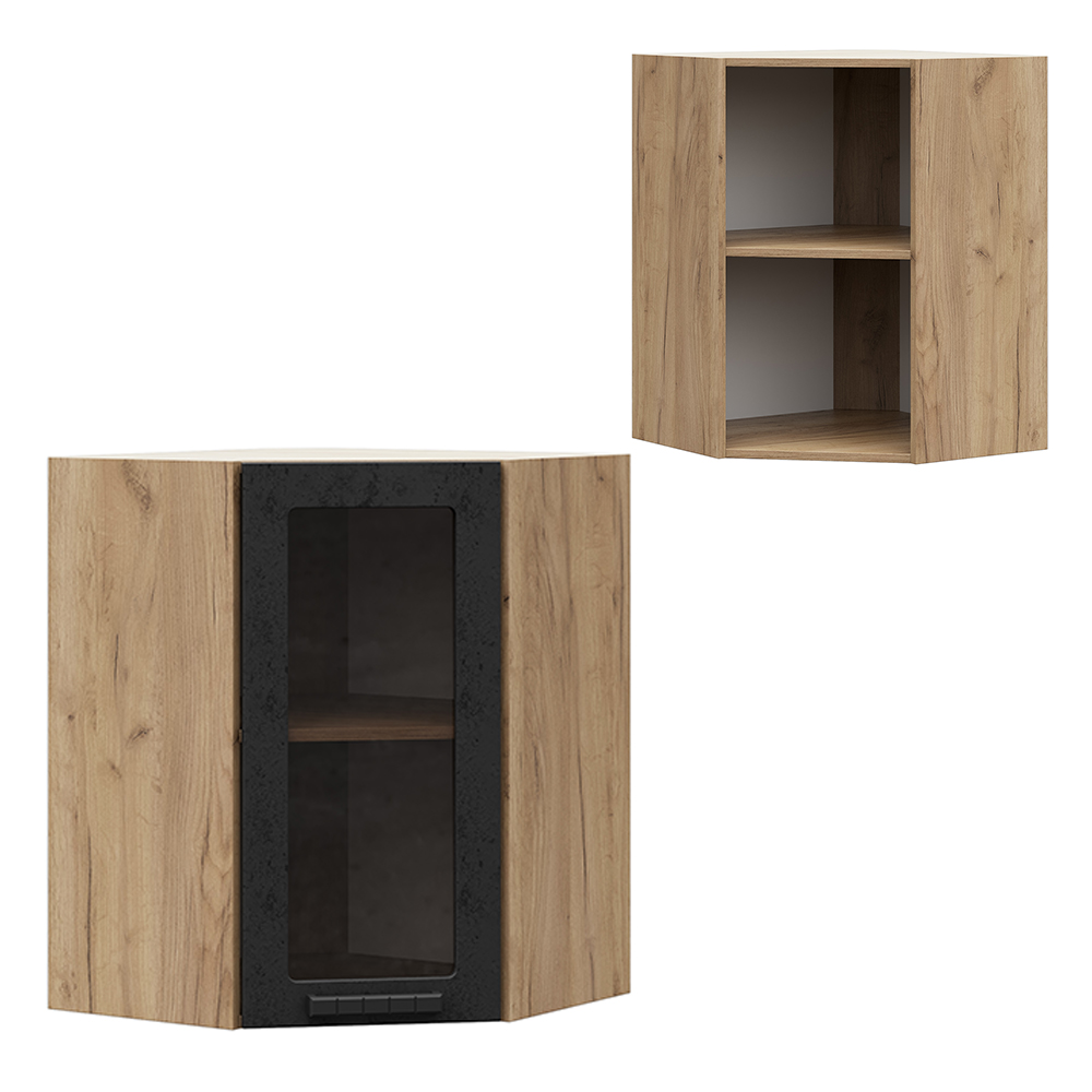 Шкаф верхний угловой со стеклом ШВУС 550 (0,55х0,55х0,716х0,314)/корпус ДУБ КРАФТ ЗОЛОТО/фасад МДФ ХОЛСТ ВУЛКАН/АльфаГабариты (В×Ш×Г) 71.6 × 55 × 55 см - Под заказ5 490 ₽В корзине
