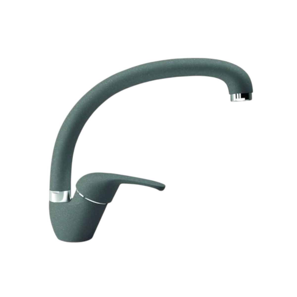 Внешне смеситель похож на камень, потому что используется порошковая окраска и матовый лак. Это придаёт поверхности текстуру и цвет, схожий с мойками из гранитной крошки.