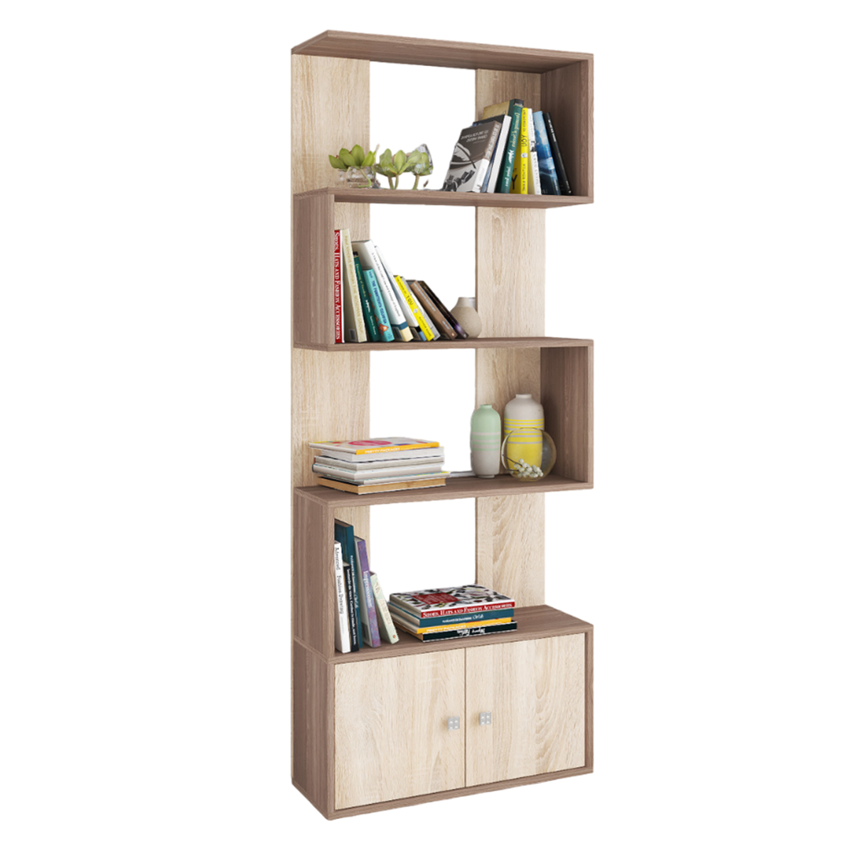 Удобный стеллаж имеет 4 секции в виде змейки и нижнее отделение с двумя распашными дверцами. На модели удобно расположить коллекции книг, семейные фотографии, сувениры. Закрытое отделение поможет скрыть от глаз другие ценные предметы.