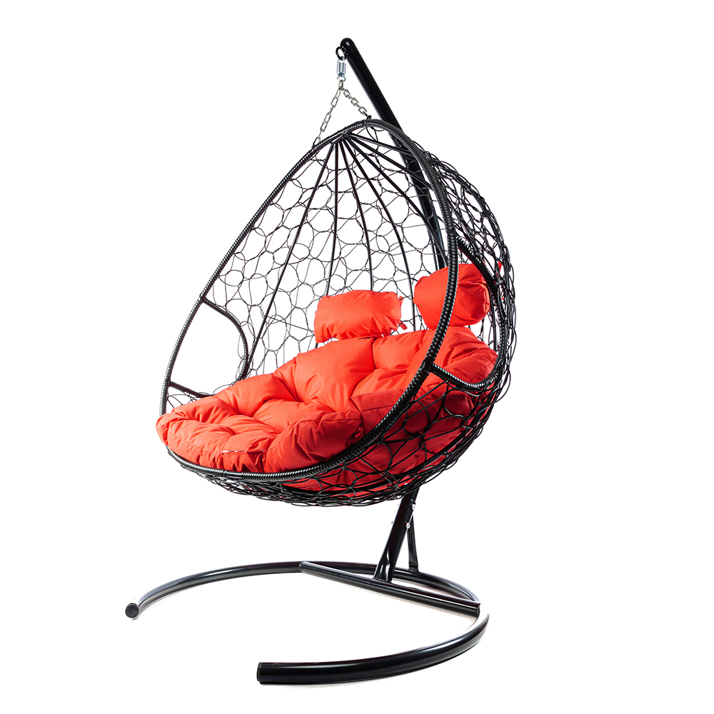 Кресло подвесное Для Двоих с ротангом черное, красная подушка