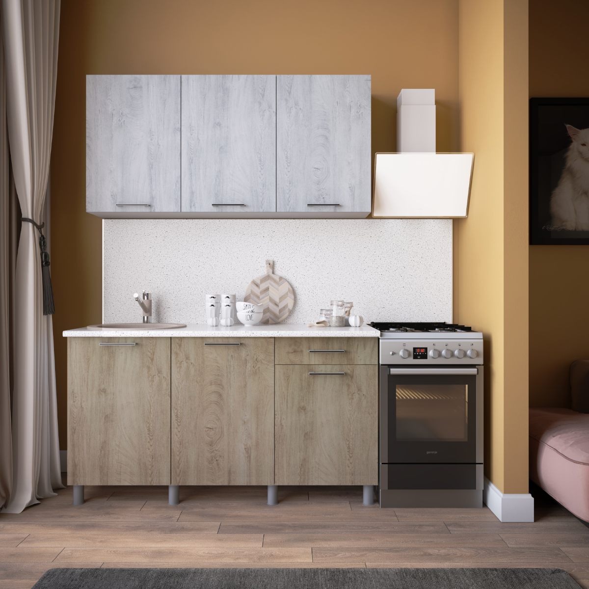 Предоставляется рассрочка на Кухня Палермо 1,5 м Дуб Остин Серый/Дуб Остин Бежевый (без столешницы)