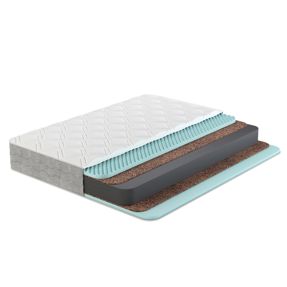 Чехол выполнен из качественного льняного трикотажа Stellini, обладает высокой воздухопроницаемостью, что создает оптимальный микроклимат для сна. В основе матраса используется угольная пена Carbon Foam - это гипоаллергенный материал, препятствующий развитию вредоносных микроорганизмов, отталкивающий влагу и пыль. Слой из натурального кокосового волокна поможет надолго сохранить форму матраса в первоначальном виде.