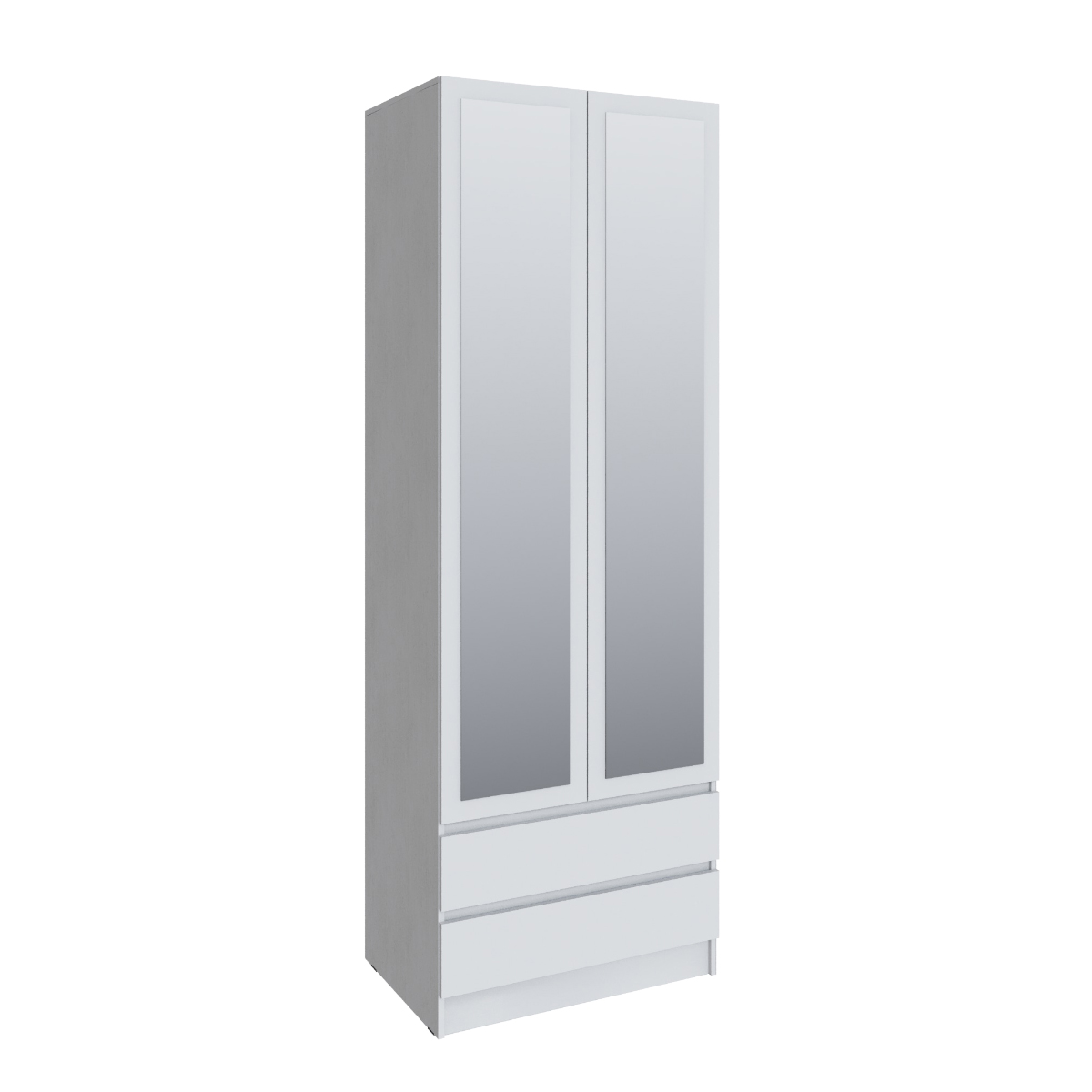 Шкаф Мадрид (0,8) с 2 ящиками без ручек, с зеркалом белый/ателье светлоеГабариты (В×Ш×Г) 230 × 80 × 52 см