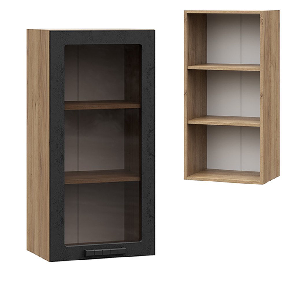 Шкаф верхний со стеклом ШВС 450-920 (0,45х0,920х0,314)/корпус ДУБ КРАФТ ЗОЛОТО/фасад МДФ Бетон Темный/Бетоны