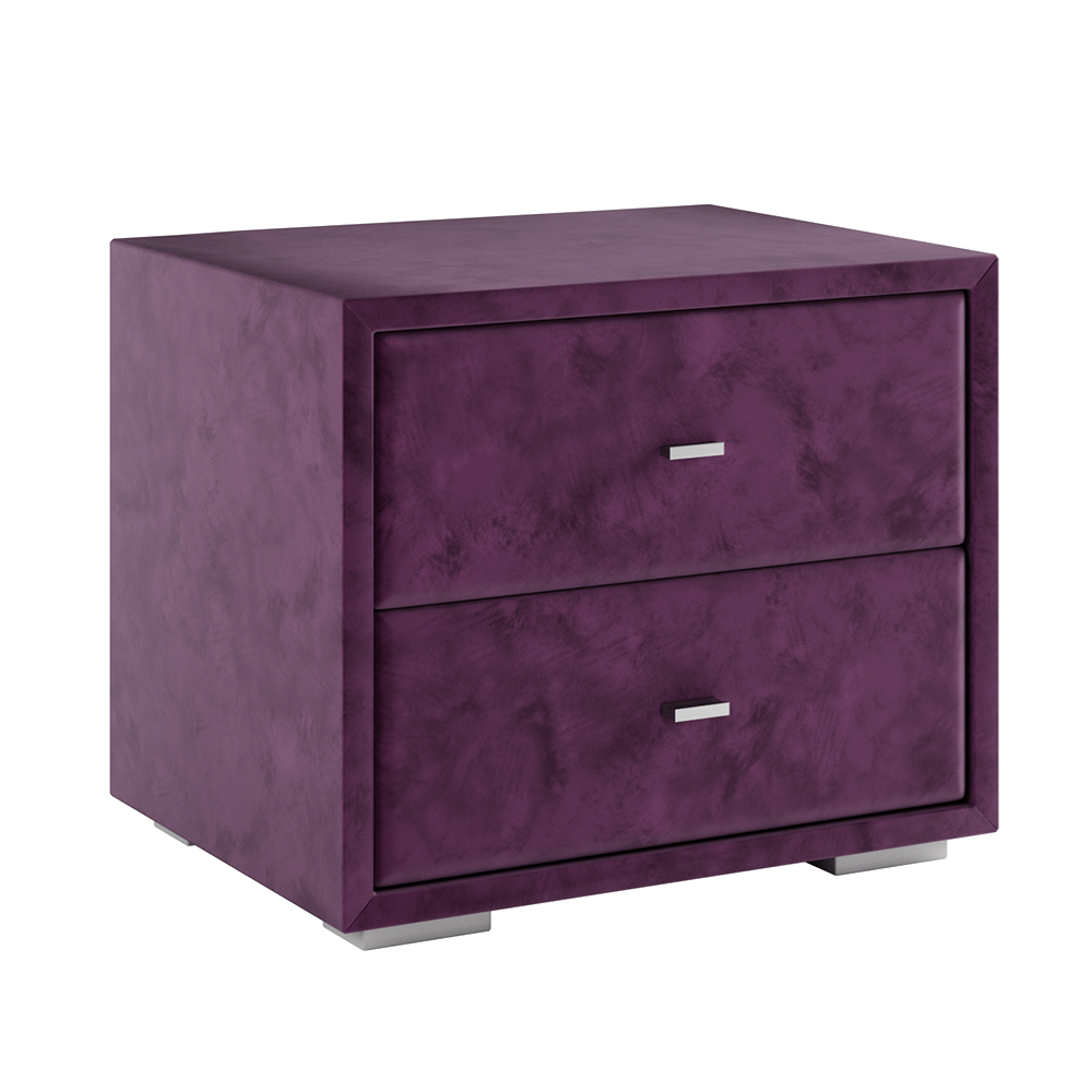 Эта восхитительная прикроватная тумба с двумя выдвижными ящиками на шариковых направляющих обита мягкой тканью, укрывающей твердые углы и поверхность: обивочный материал - двухслойный плотный велюр - обладает мягкостью и эластичностью, устойчив к воздействию и легок в уходе.